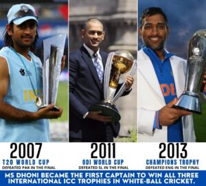 He led India to victory in the first ICC T20 World Cup in 2007, the ICC Cricket World Cup in 2011, and the ICC Champions Trophy in 2013. He became the only skipper in cricket history to win all three main ICC titles. His ability to stay calm under pressure earned him the nickname “Captain Cool,” and his tactical selections frequently changed games in India’s favor.
